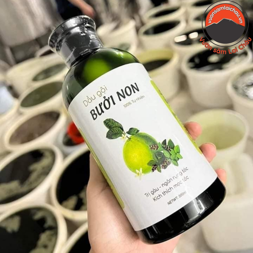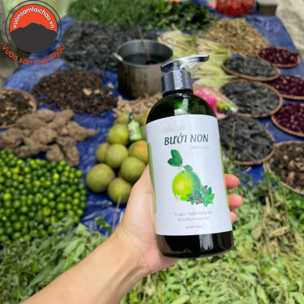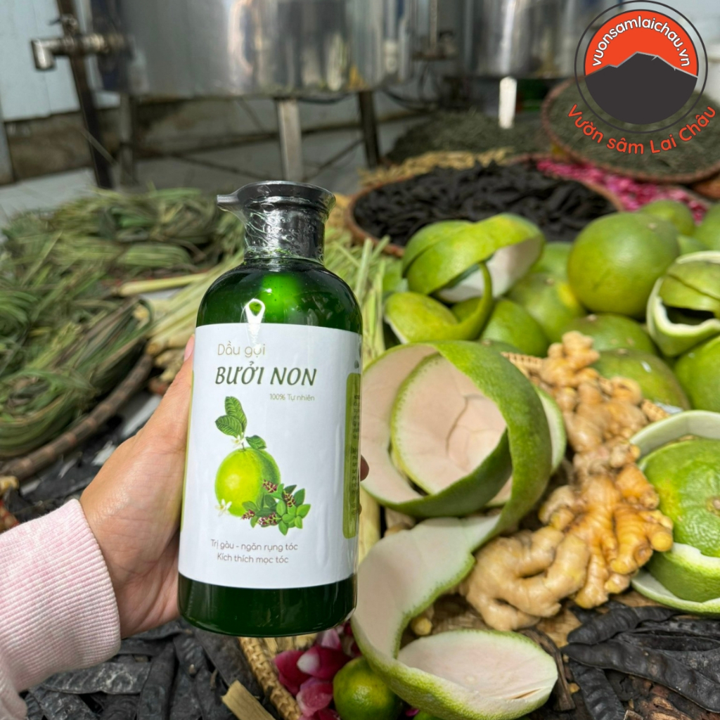- ✅ Tên sản phẩm: Dầu gội thảo dược bưởi non – handmade 500ml