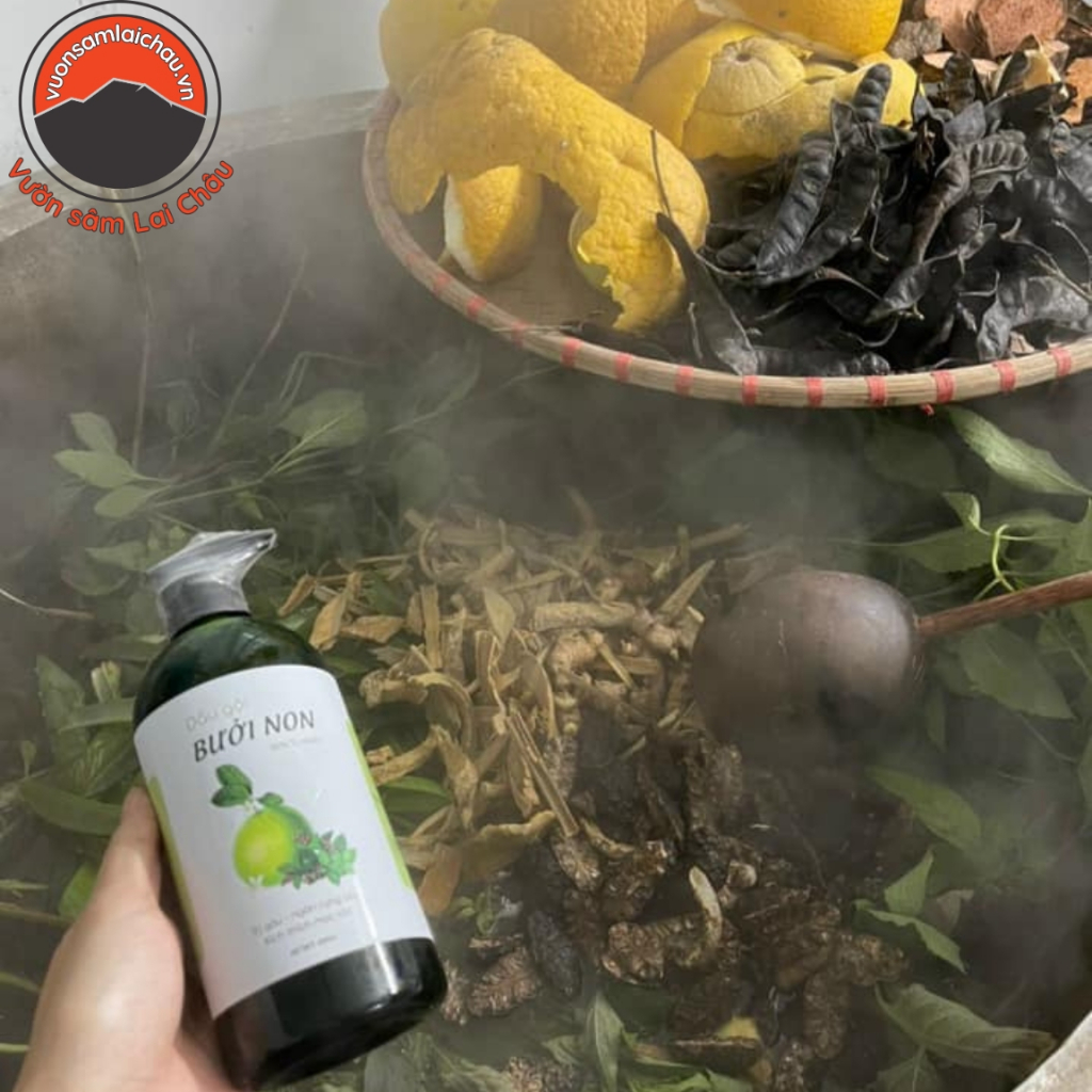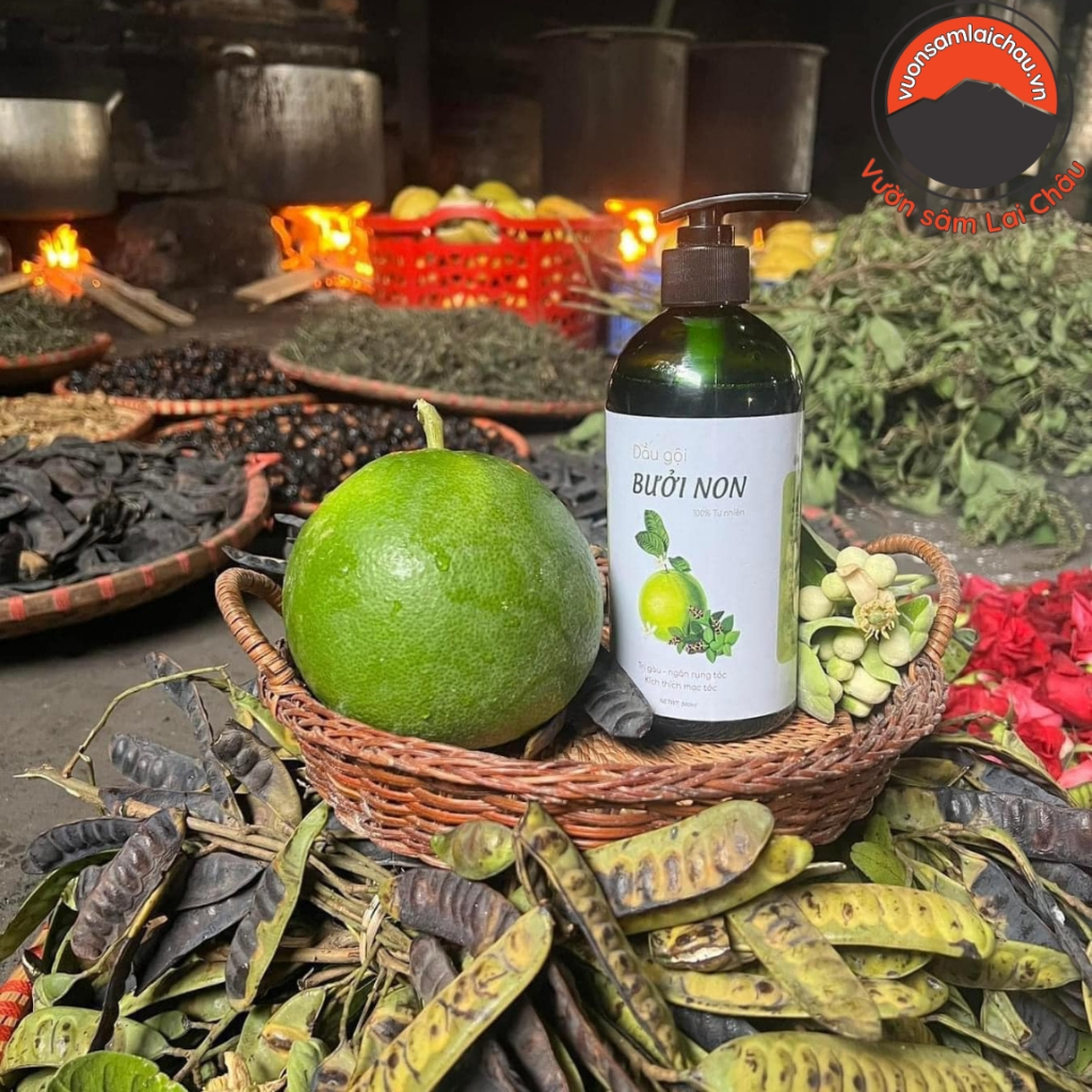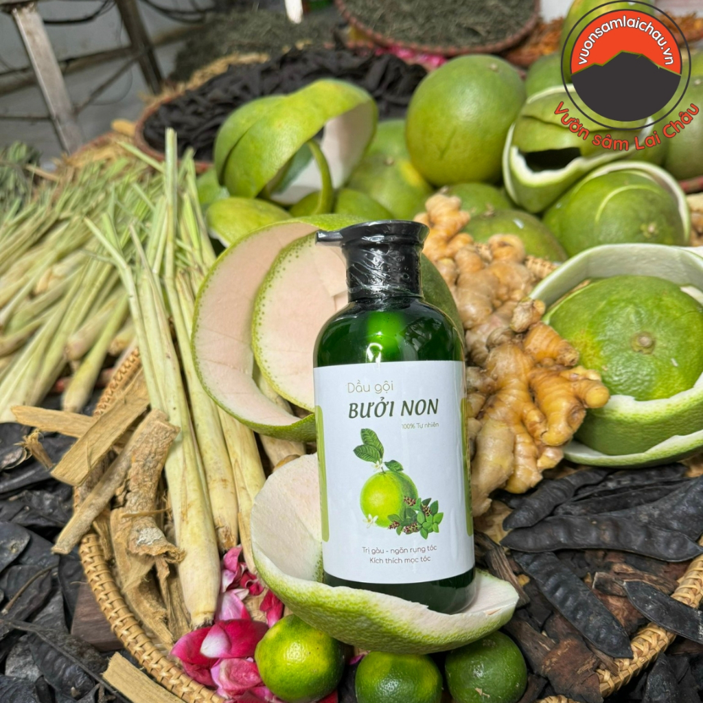 - ✅ Tên sản phẩm: Dầu gội thảo dược bưởi non – handmade 500ml