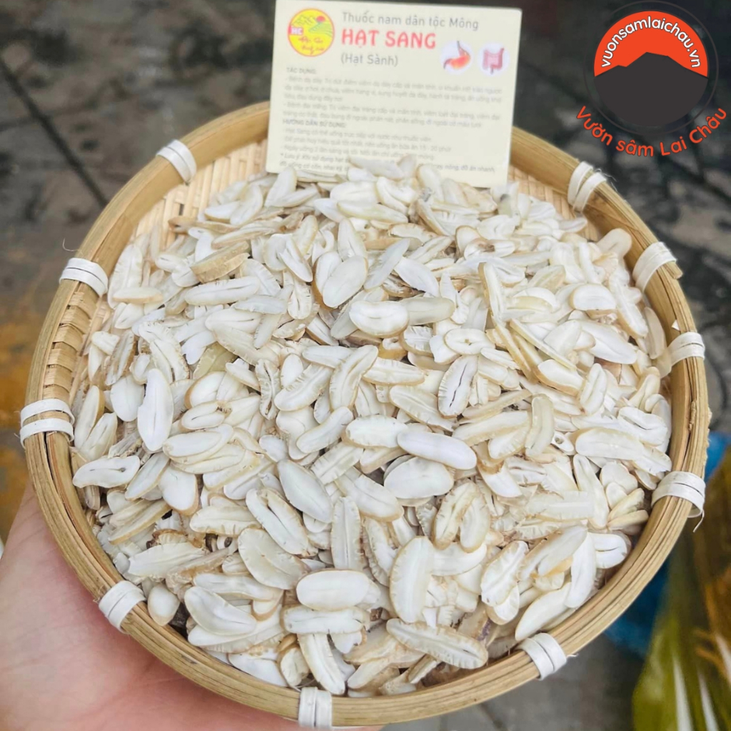 Hạt sang (hay còn gọi là hạt sành trắng) là dược liệu quý hiếm thu hái trực tiếp từ rừng sâu Tây Bắc. Sản phẩm được chọn lựa kỹ càng, cạo vỏ và cắt sẵn từng lát tiện lợi, giữ nguyên tinh túy dược tính.