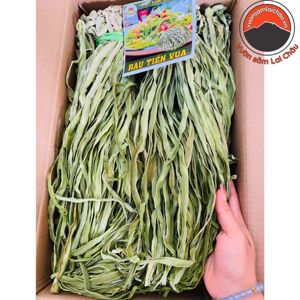 Rau tiến vua là loại rau đặc biệt nổi tiếng vùng Tây Bắc, được sấy khô theo công nghệ nhẹ nhàng giữ trọn màu xanh tươi mát và dưỡng chất tự nhiên. Với sợi rau dẹp, dài, khi ngâm sẽ nở gấp 2-3 lần, giúp bạn dễ dàng chế biến nhiều món ngon như nấu canh, xào thịt, làm gỏi, hoặc ngâm ớt chua ngọt dai giòn hấp dẫn.