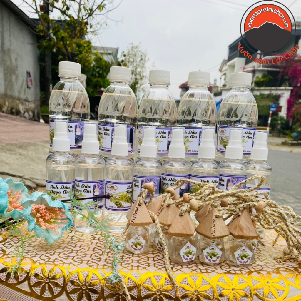 - Pha 10 giọt tinh dầu Ngọc Am vào 100ml nước sạch, cho vào bình xịt, lắc đều trước khi dùng.